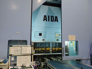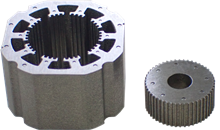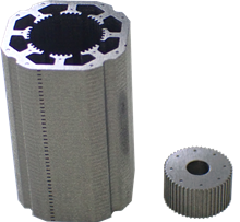 電磁鋼板と呼ばれる材料をプレス機で打ち抜き、自動積層を行い車載用角度センサ (商品名:シングルシン)やサーボモータ用の鉄芯を製造しています。